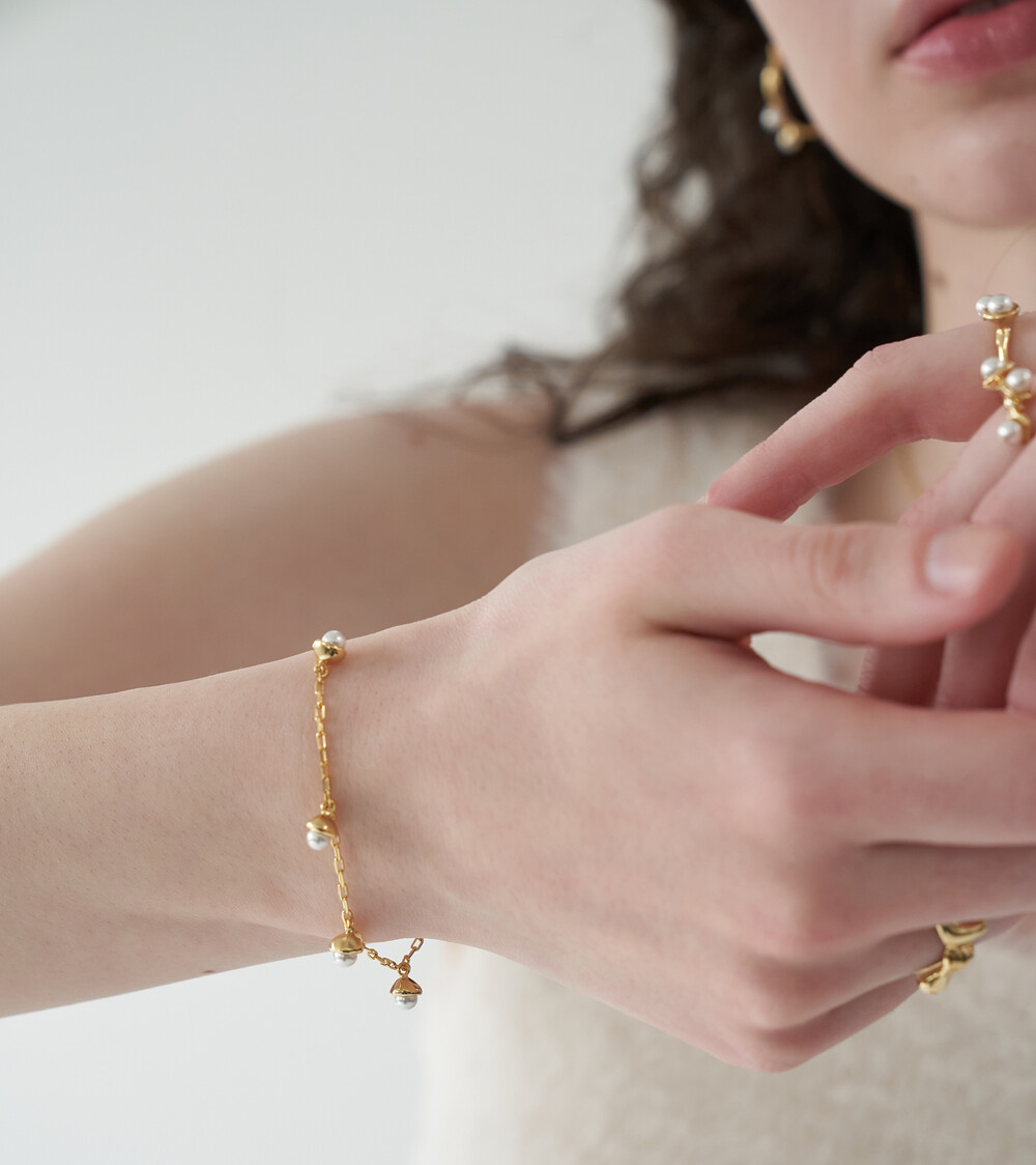작은 미니 버섯이 4개 달려있는 사랑스러움이 포인트인 팔찌입니다.
