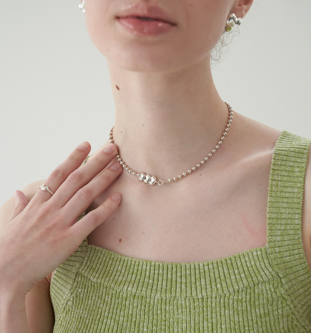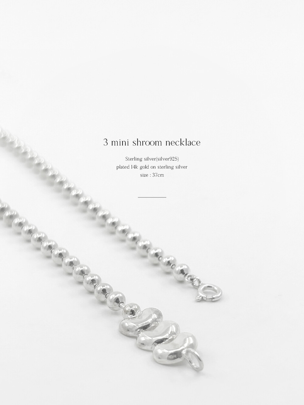 3개의 귀여운 버섯이 나란이 붙어있는 목걸이입니다. 볼 체인과 어울리게 디자인하였습니다. 목에 딱 붙게 착용하는게 좋은 목걸이 입니다.