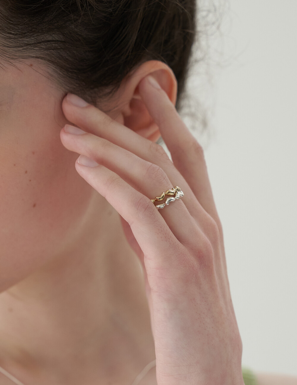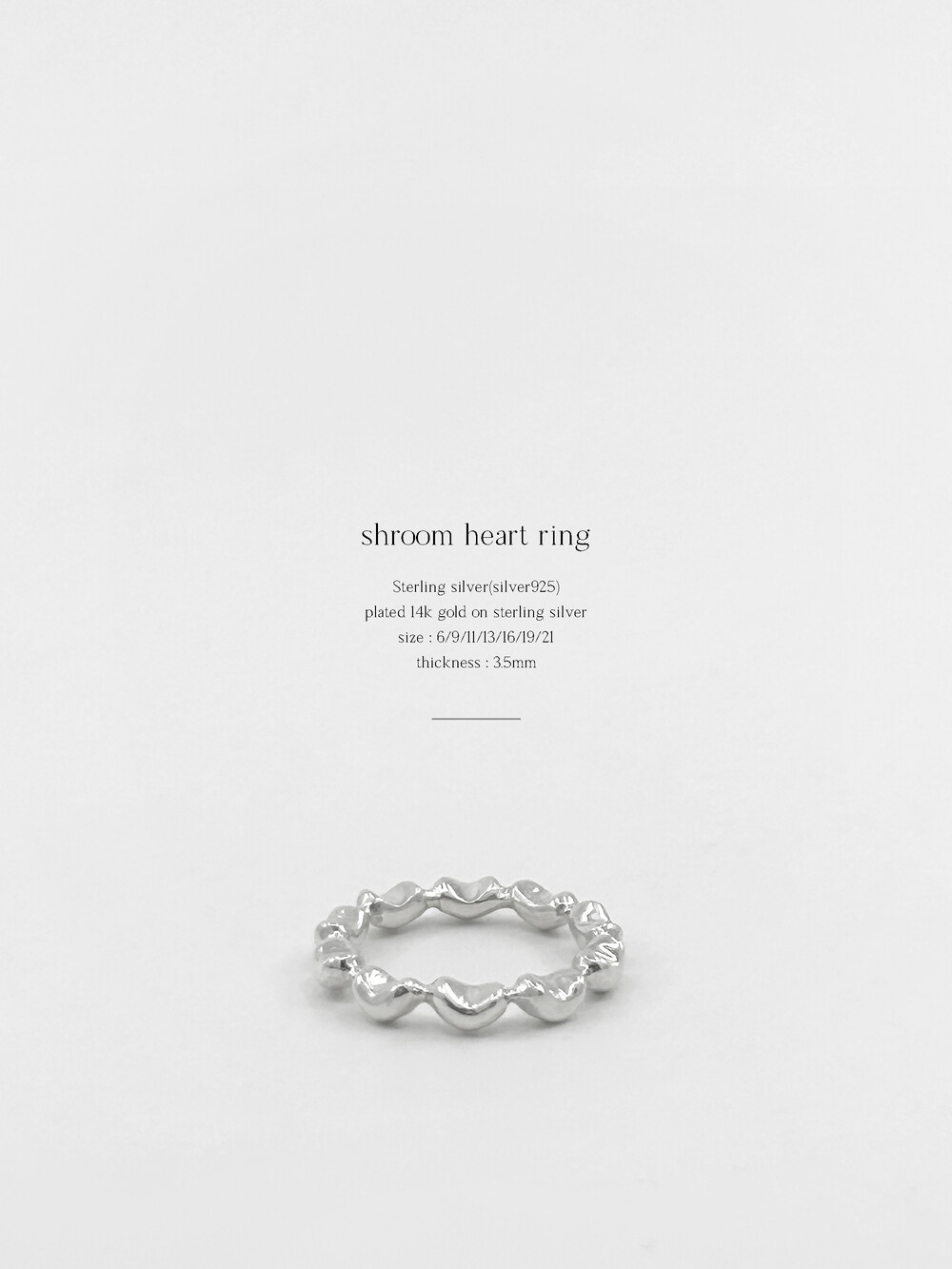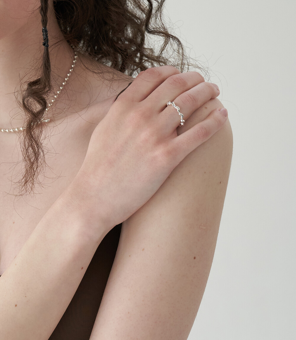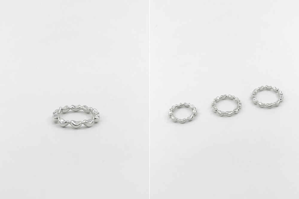 작은 미니 버섯들이 계속 반복되는 형태의 반지입니다. 어느 반지와도 잘 어울려 다양하게 코디가 가능합니다. 반지는 한호수 작게 선택해주세요.