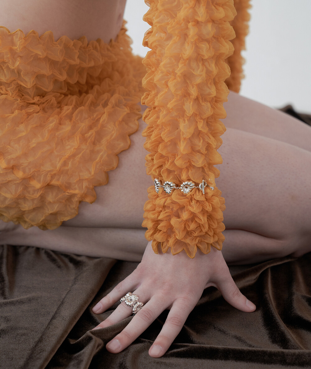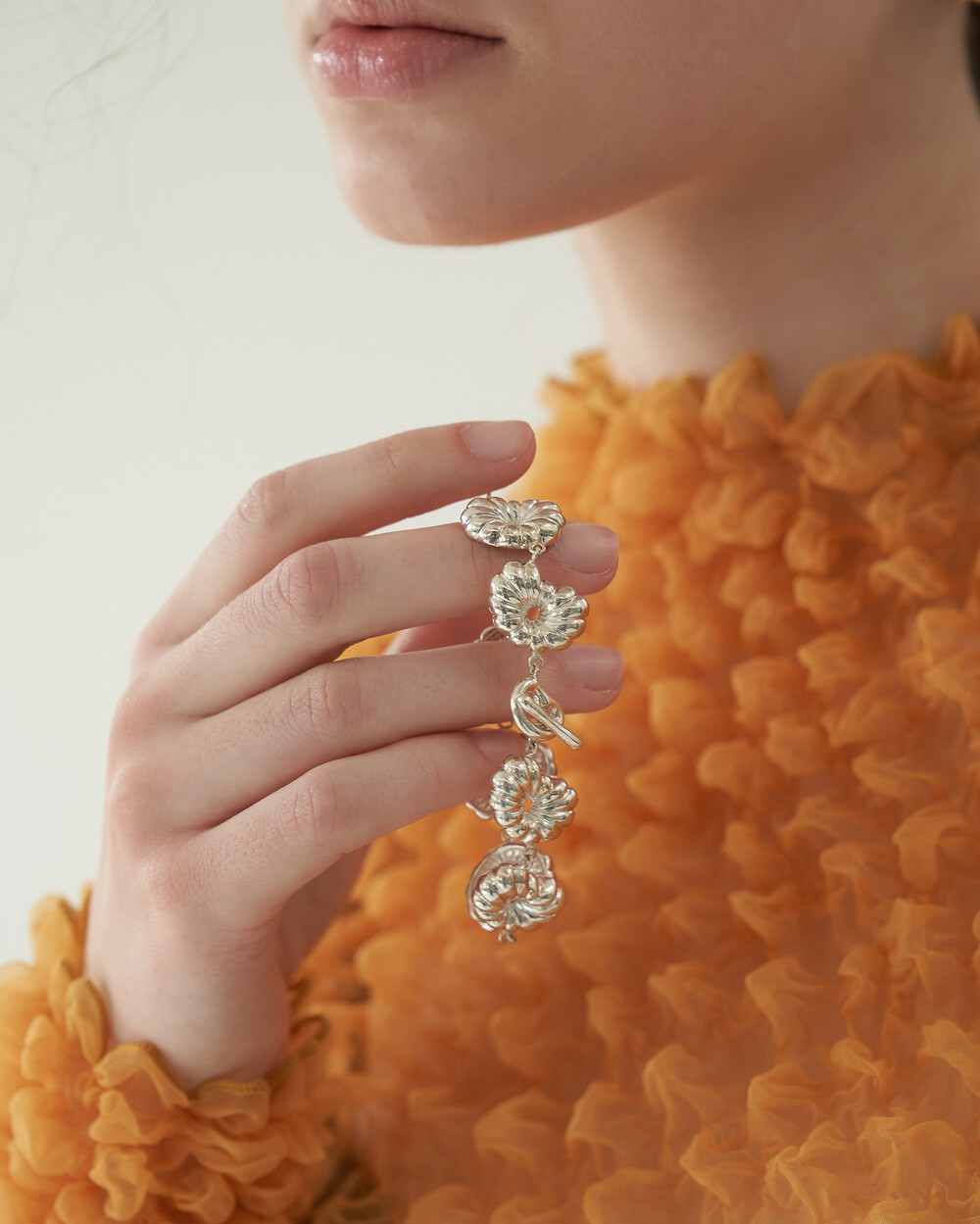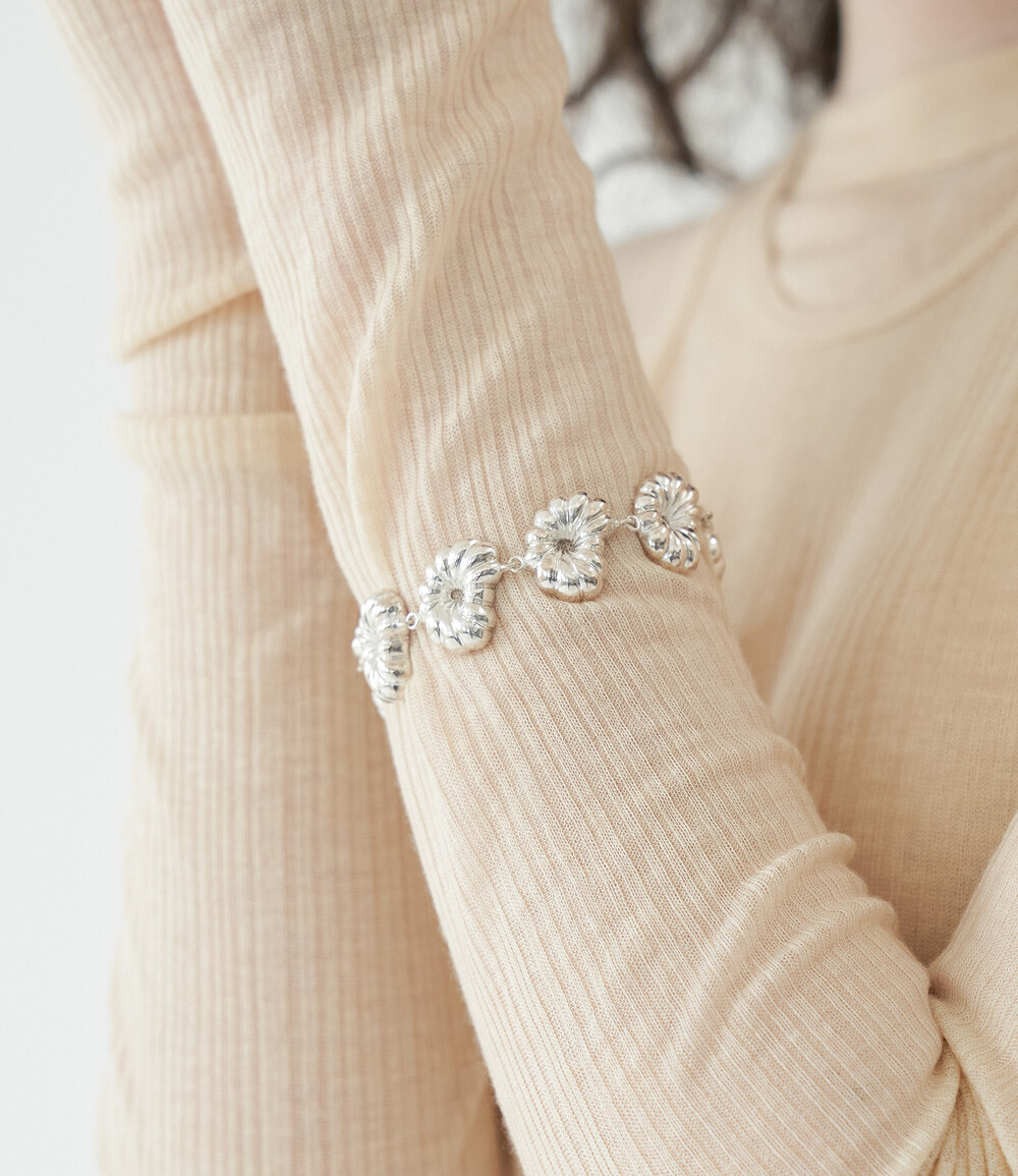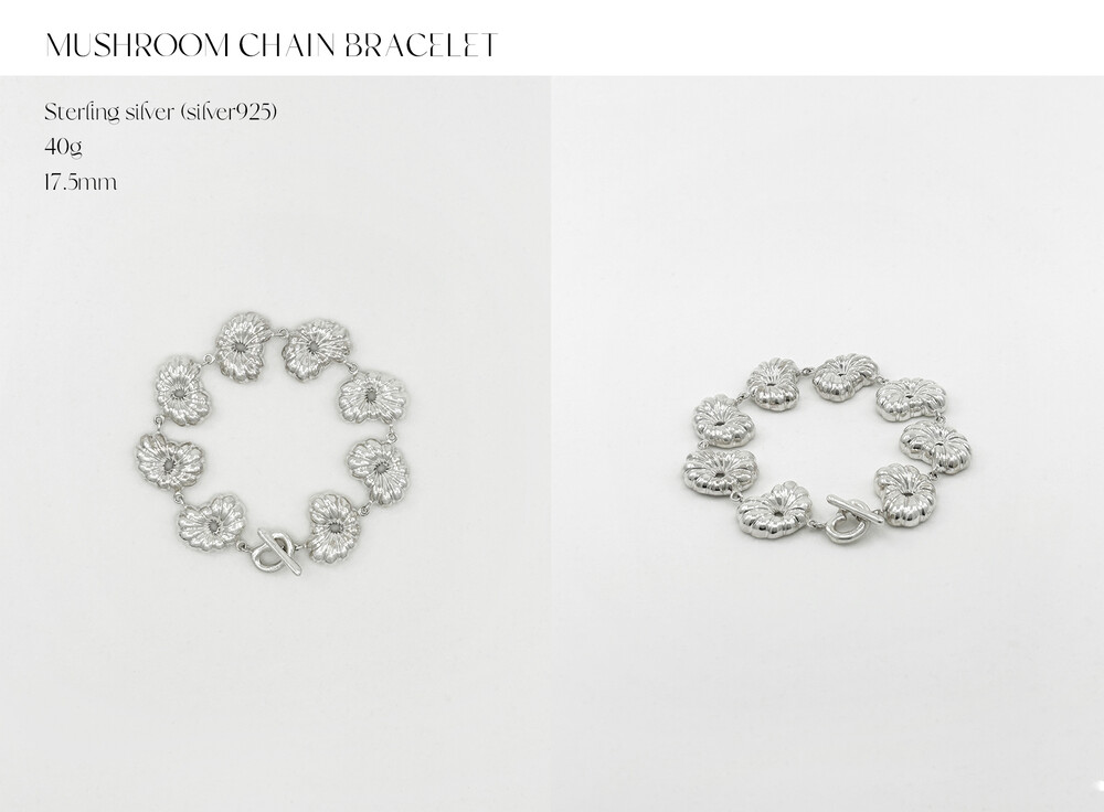 쁠리에가 버섯에서 느끼고 표현한 버섯이 가득 담긴 팔찌입니다. 이번 시즌의 대표 시그니처를 체인으로 연결하여 제작하였습니다.