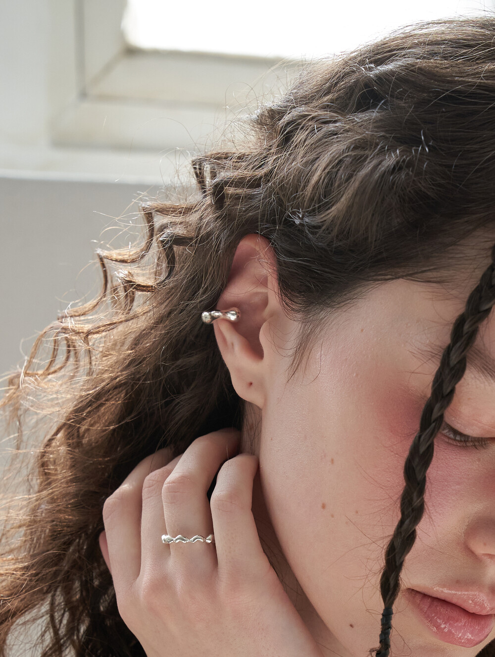 쁠리에가 버섯을 관찰하고 연구해 쁠리에만의 시선으로 본 버섯의 우아한 곡선을 표현한 이어커프입니다. 귓볼이 두꺼우신 분은 미리 알려주시면 알맞게 제작해드리겠습니다.