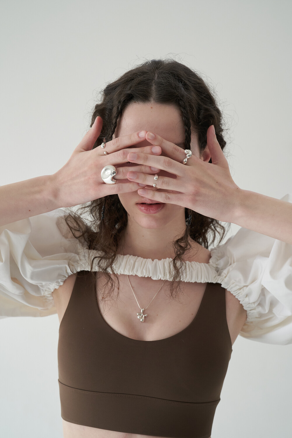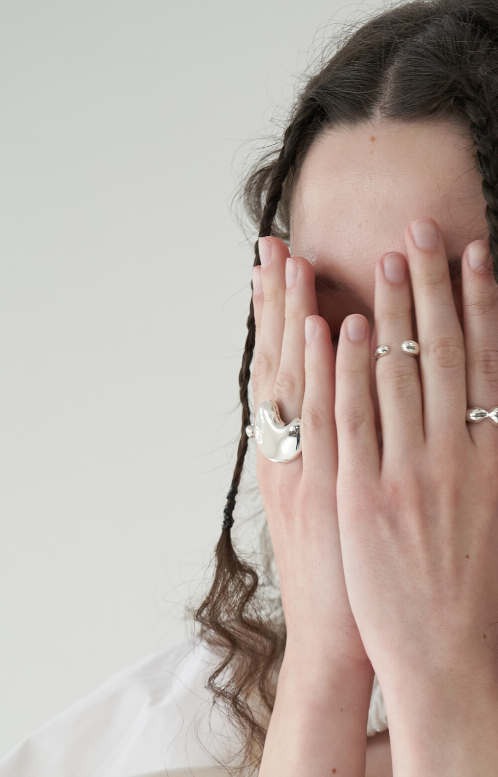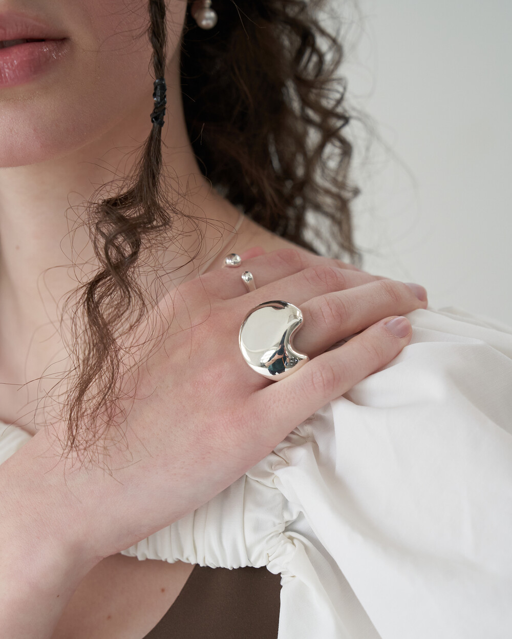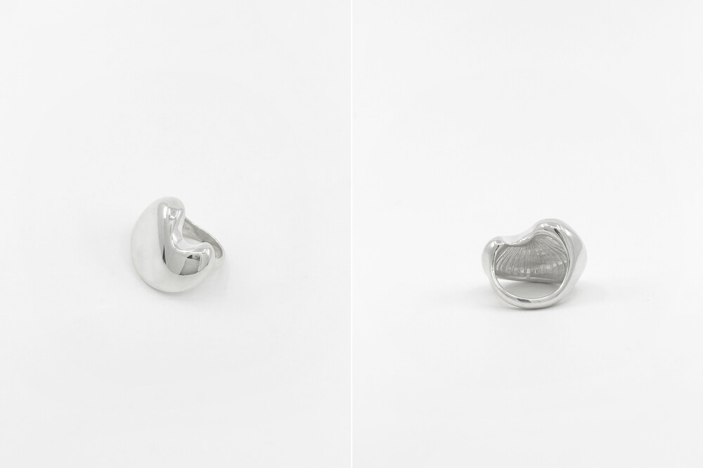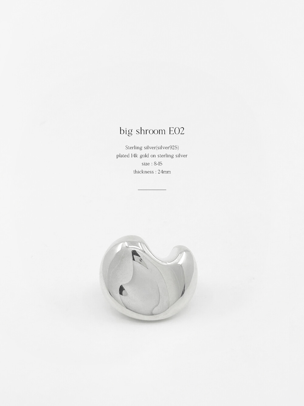 큰 버섯 모양을 부드러운 곡선과 볼륨감으로 표현한 반지입니다. 묵직한 볼륨감이 매력적이며 무거운 반지입니다. 2호수 작게 착용하는 걸 추천드립니다. 앞, 뒤, 옆면 다 다른 느낌이 드는 반지입니다.