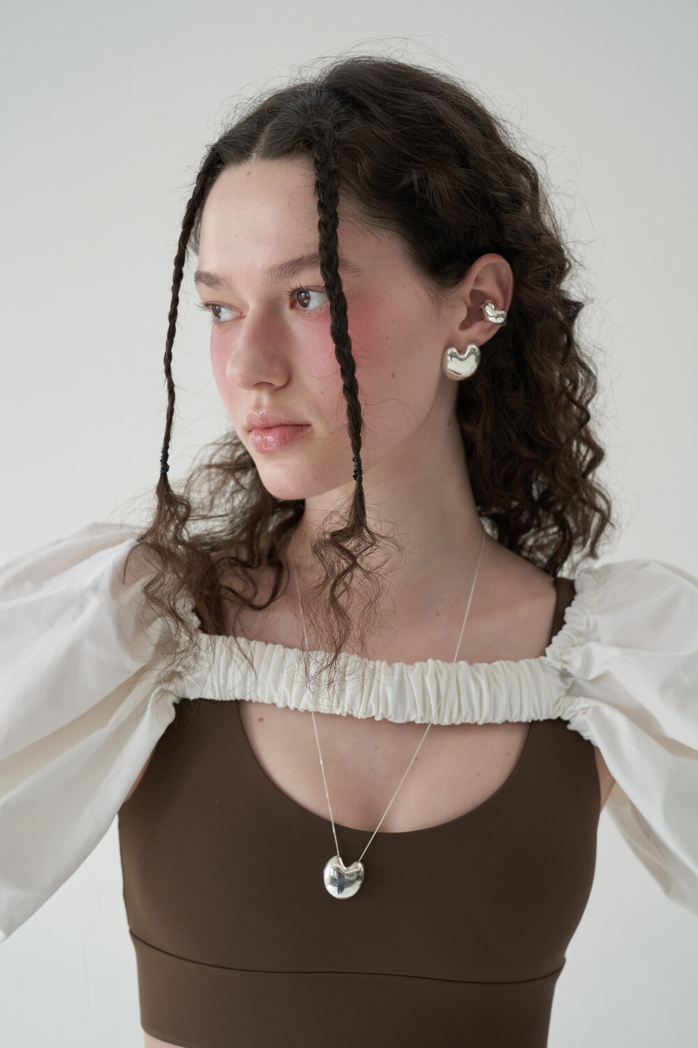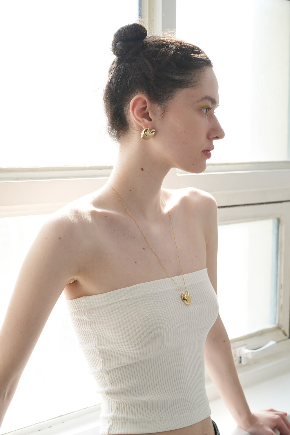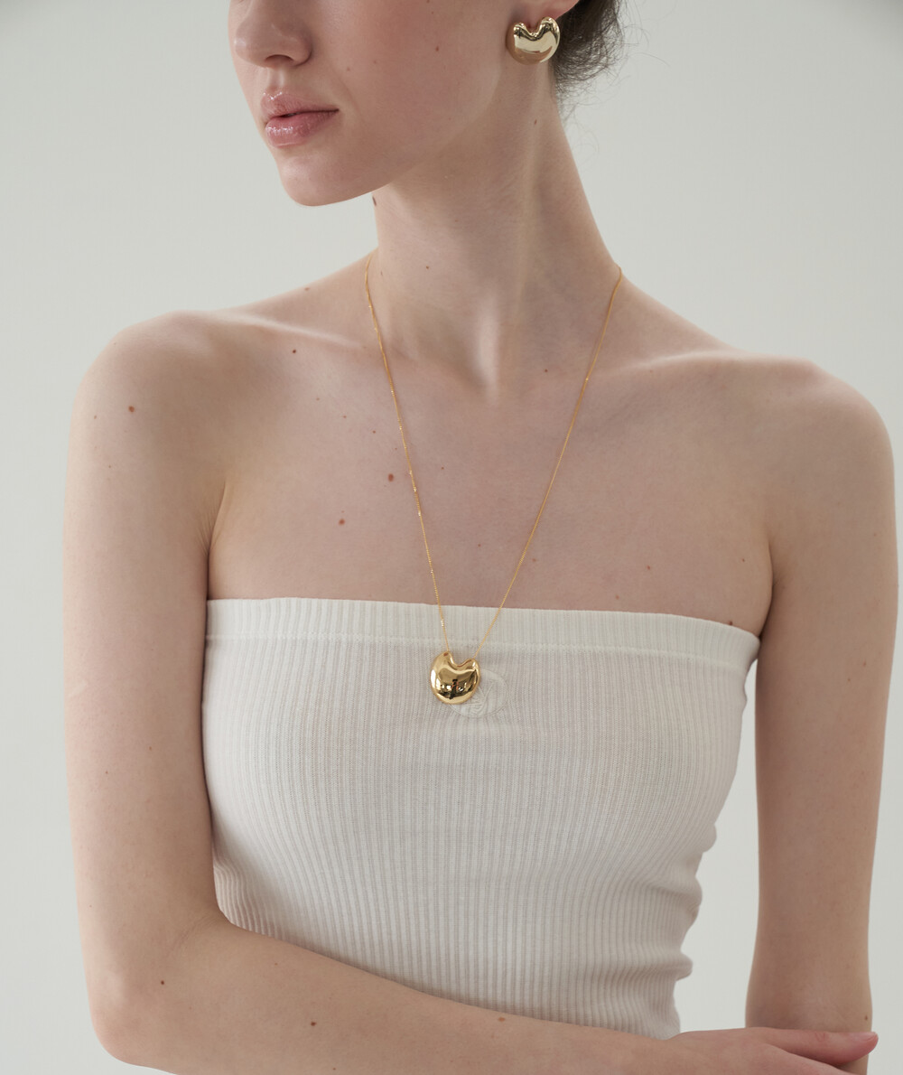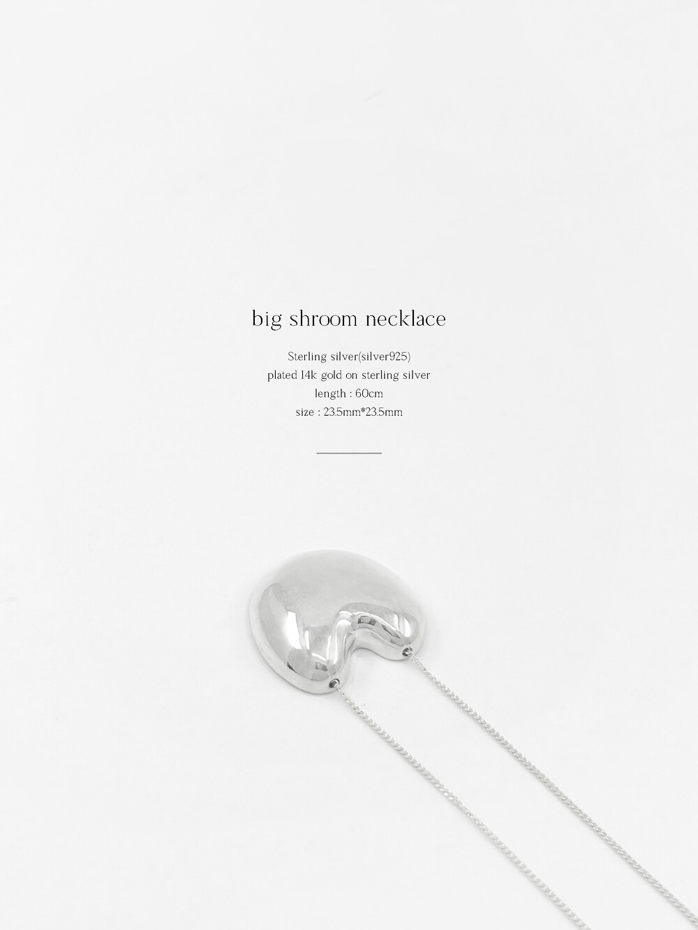 큰 버섯 모양을 부드러운 곡선과 볼륨감으로 표현한 목걸이입니다. 큰 버섯의 모양과 얇고 긴 체인과 매치하여 제작하였습니다.