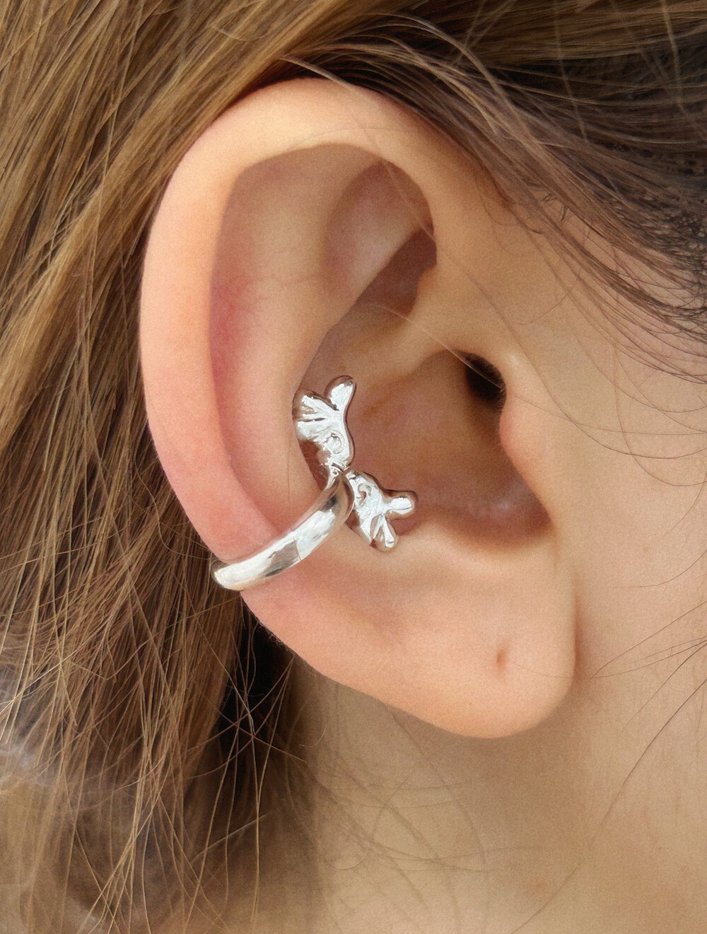사랑의 온도를 닮아 부드럽게 흐르는 곡선, 날개를 닮은 선은 여러분의 귀에 포인트가 되어 줍니다. 하트 부분과 날개 부분이 있어 2가지 방법으로 착용 가능합니다.