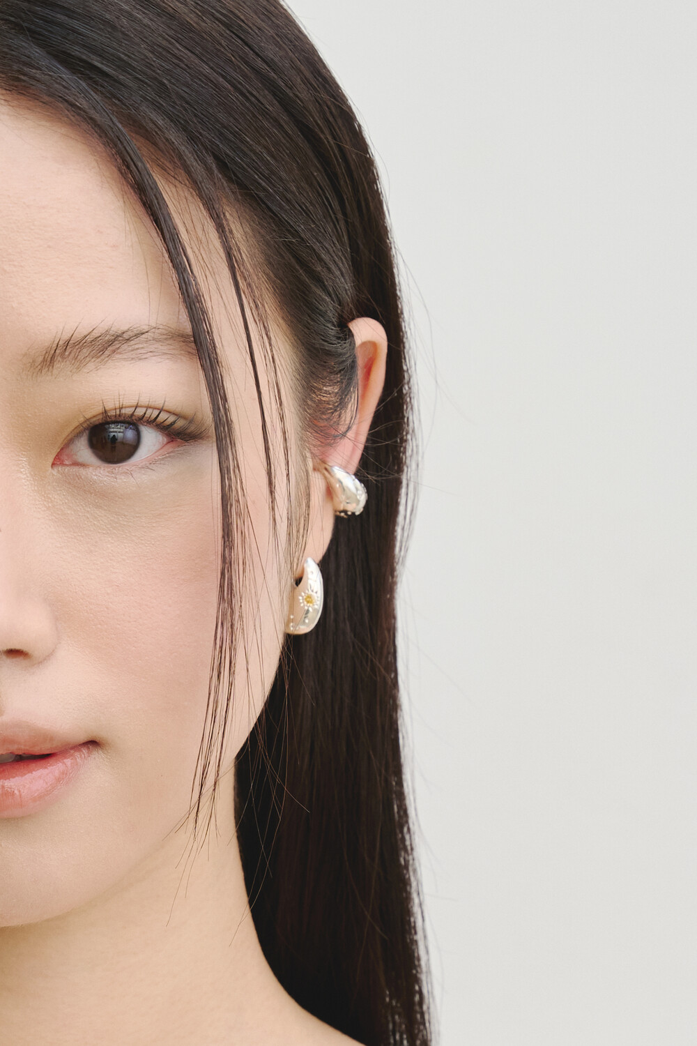 이번 컬렉션 주제 중 하나인 민들레 이어커프입니다. 아름다운 민들레 조각들이 그려져있으며 볼드함이 매력적입니다. 귓볼이 두꺼우신 분들은 미리 문의 바랍니다.