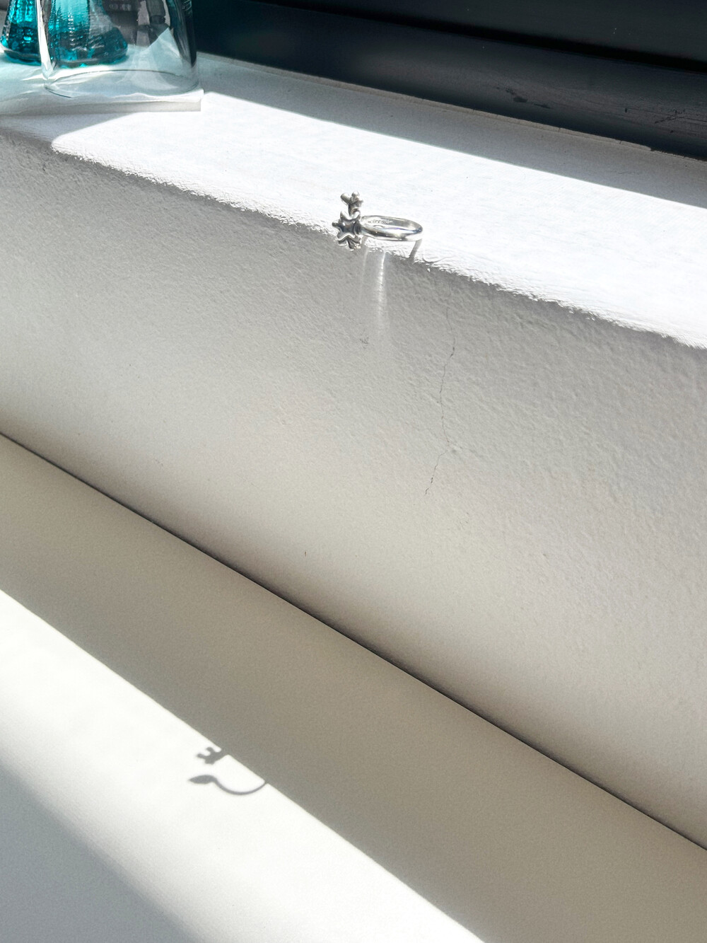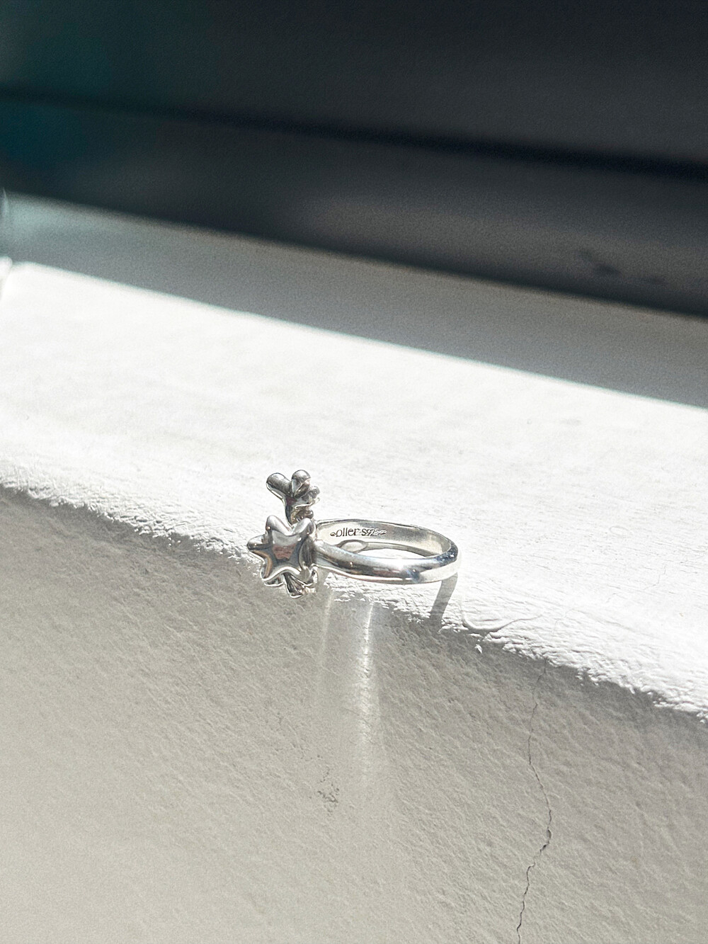 한 조각 별빛이 손끝에 머무는 마음을 담아 제작했습니다. 별처럼 반짝이는 마음과 설렘, 그리고 자유를 향한 사랑스러운 날개짓이 포인트인 반지입니다. 부드러운 곡선은 여러분의 손가락을 따라 자연스럽게 감기며 포인트를 줍니다.