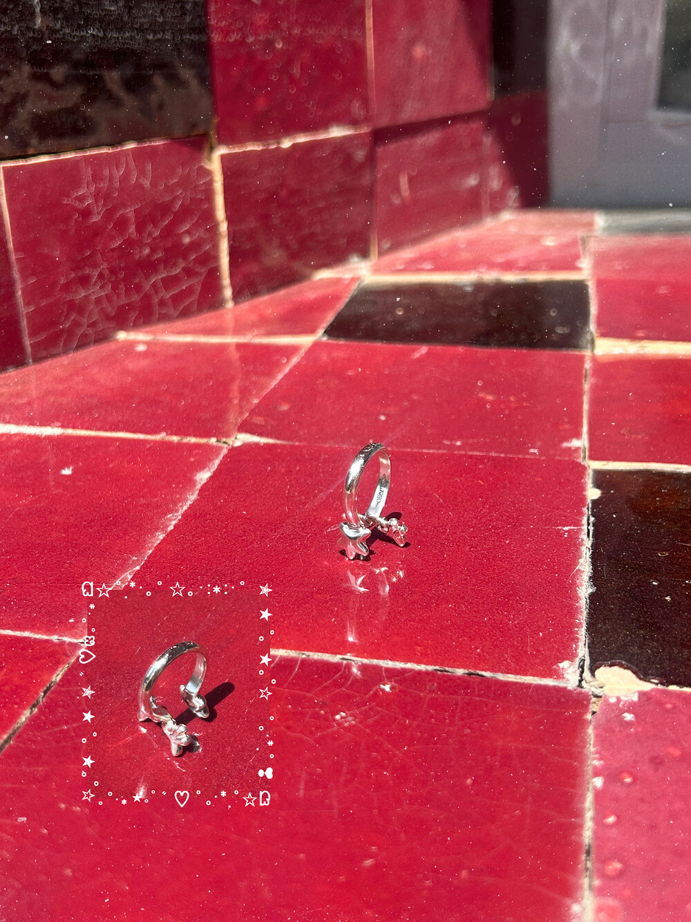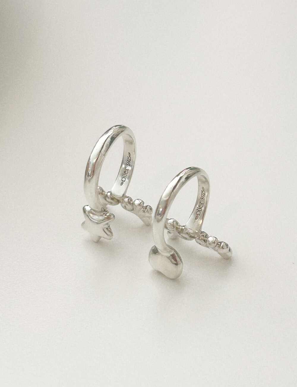 빛에 따라 은은하게 반짝이는 실버 소재는 별빛처럼 부드럽고 오픈된 형태는 여러분의 일상에 특별한 이야기가 될 거예요.