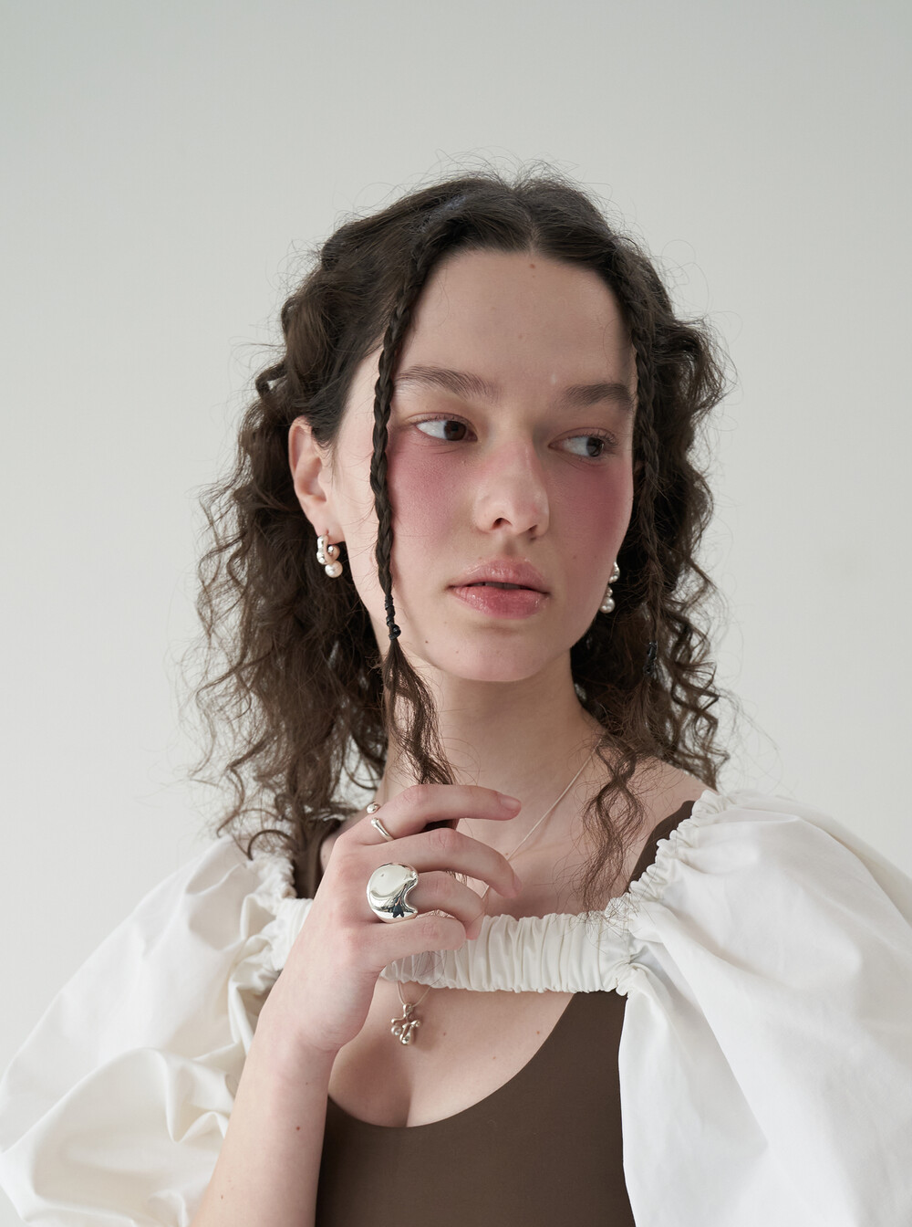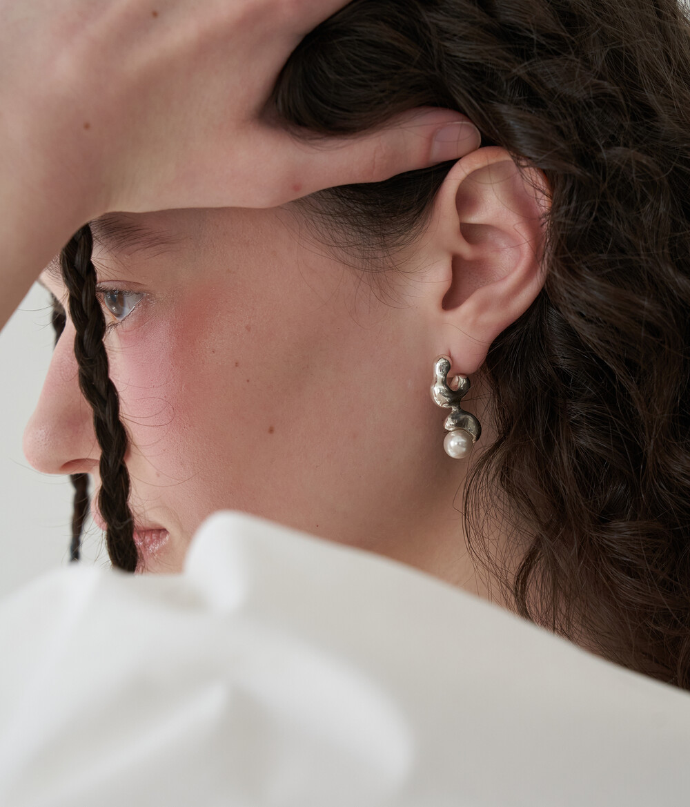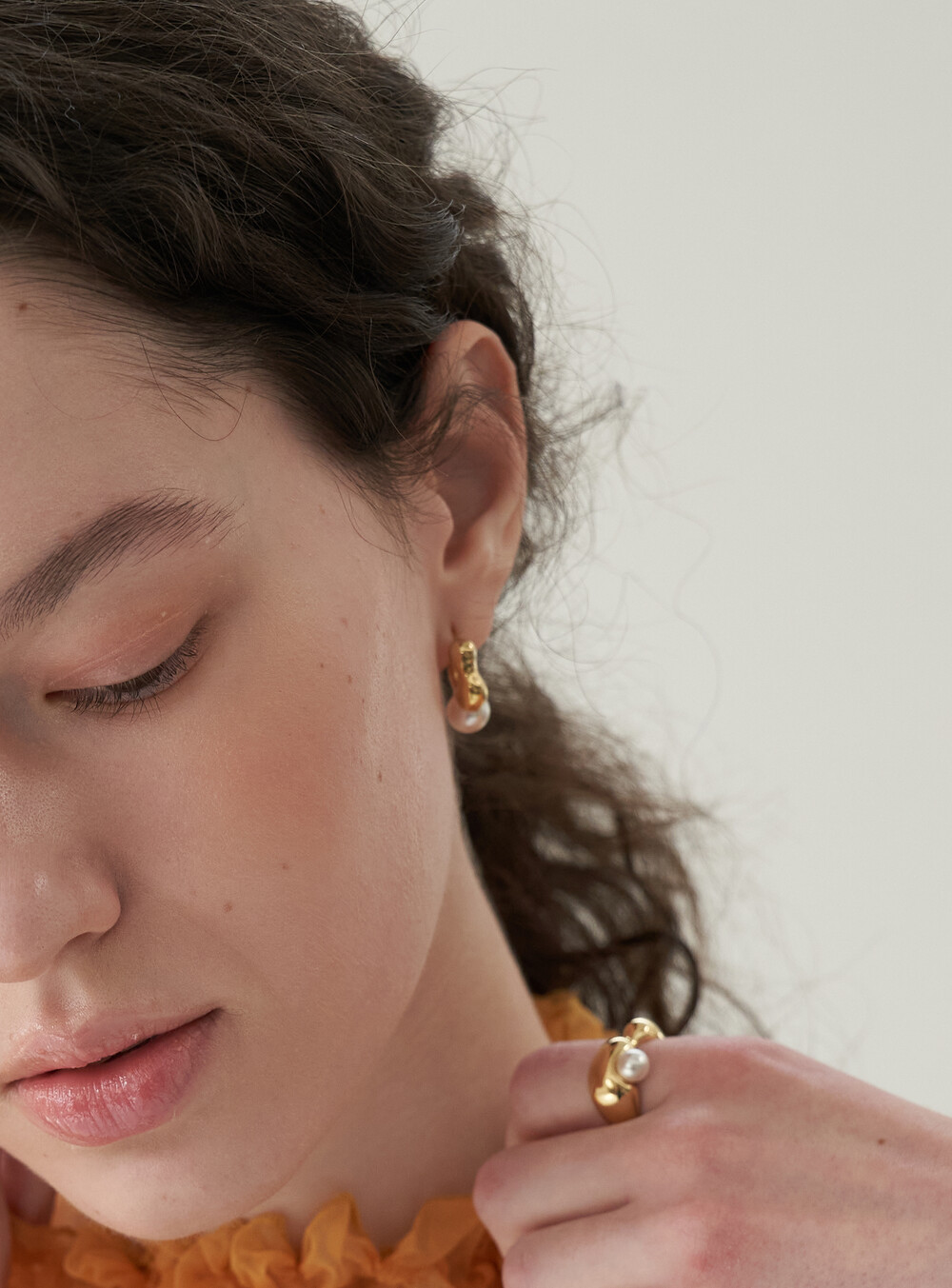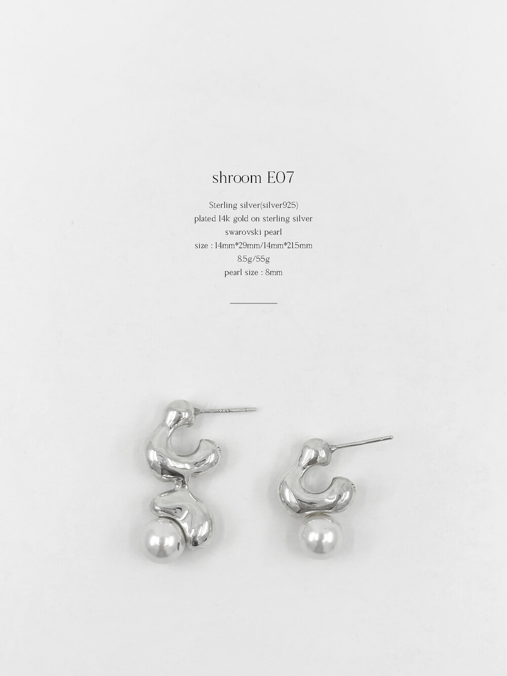 쁠리에만의 시선으로 본 다양한 버섯들의 곡선들을 표현한 이어링입니다. 진주와 매치하여 우아하고 고급스러운 이어링을 연출했습니다.