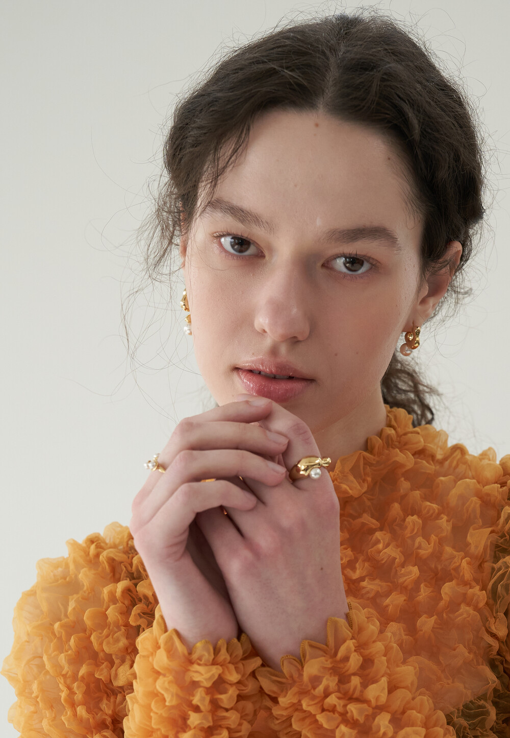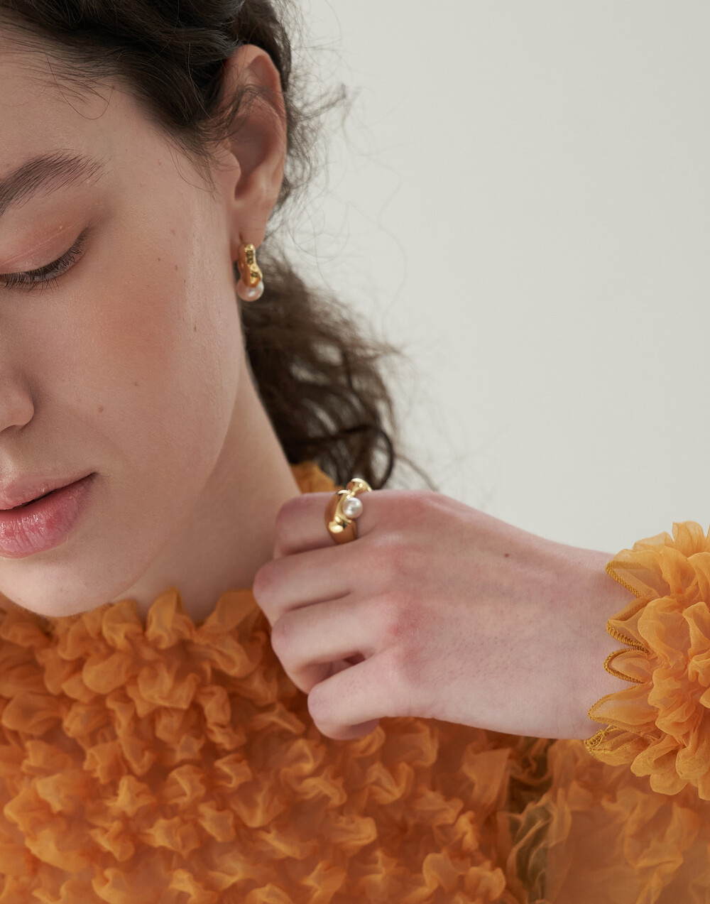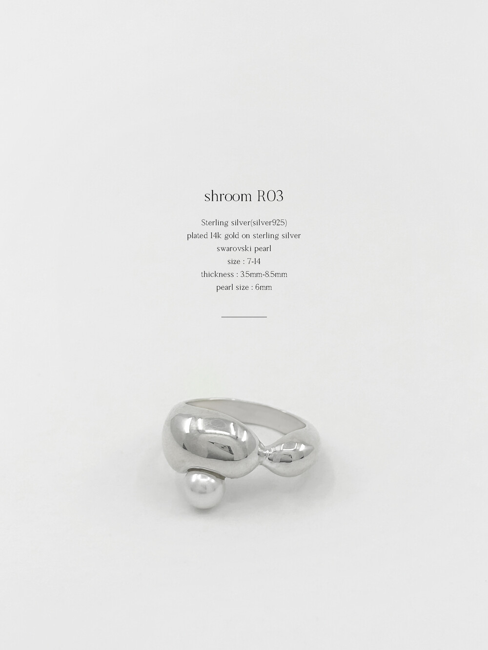 쁠리에만의 시선으로 본 다양한 버섯들의 곡선들을 표현한 반지입니다. 우아한 진주와 매치하여 볼륨감있고 고급스러운 느낌을 주었습니다.