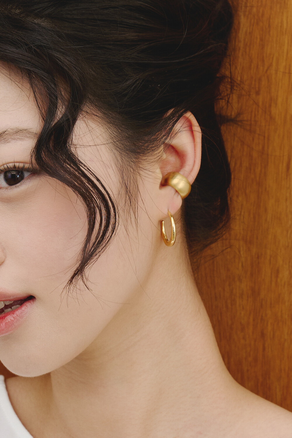 두께감과 은은한 광이 매력적인 이어커프입니다. 다만 이어커프가 두꺼워서 처음 착용하시는 분들은 통증을 느낄 수 있으니 주의 부탁드립니다. 사이즈 조절이 힘으로 가능하나 너무 많이 힘주어 늘리면 안됩니다.