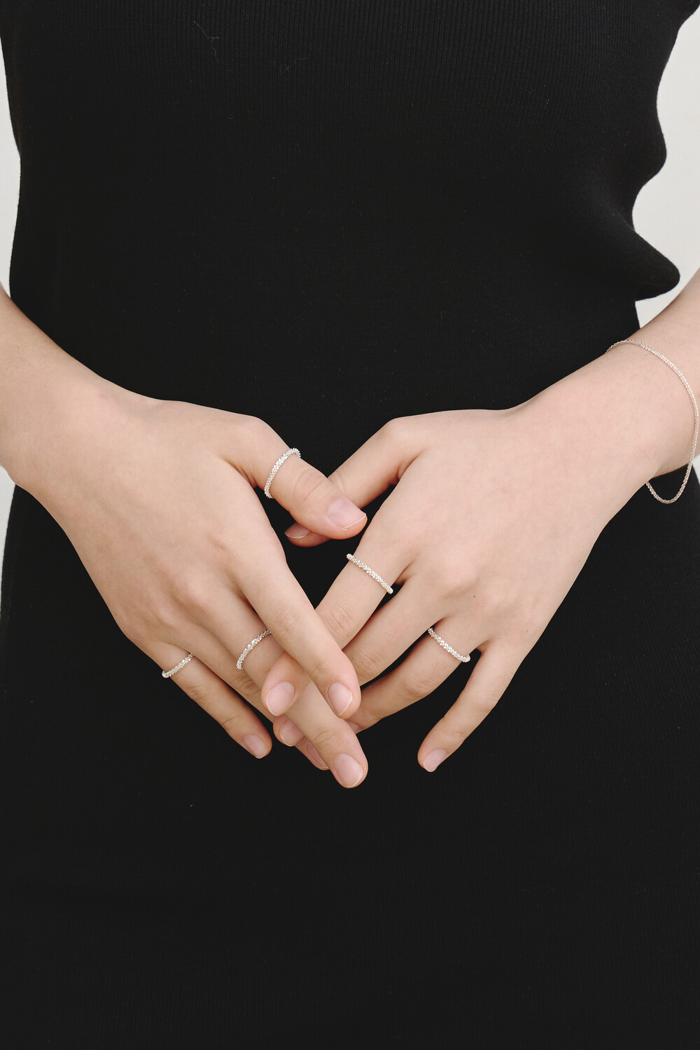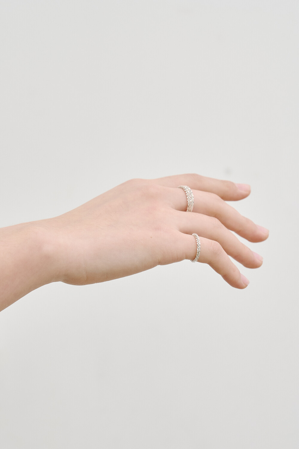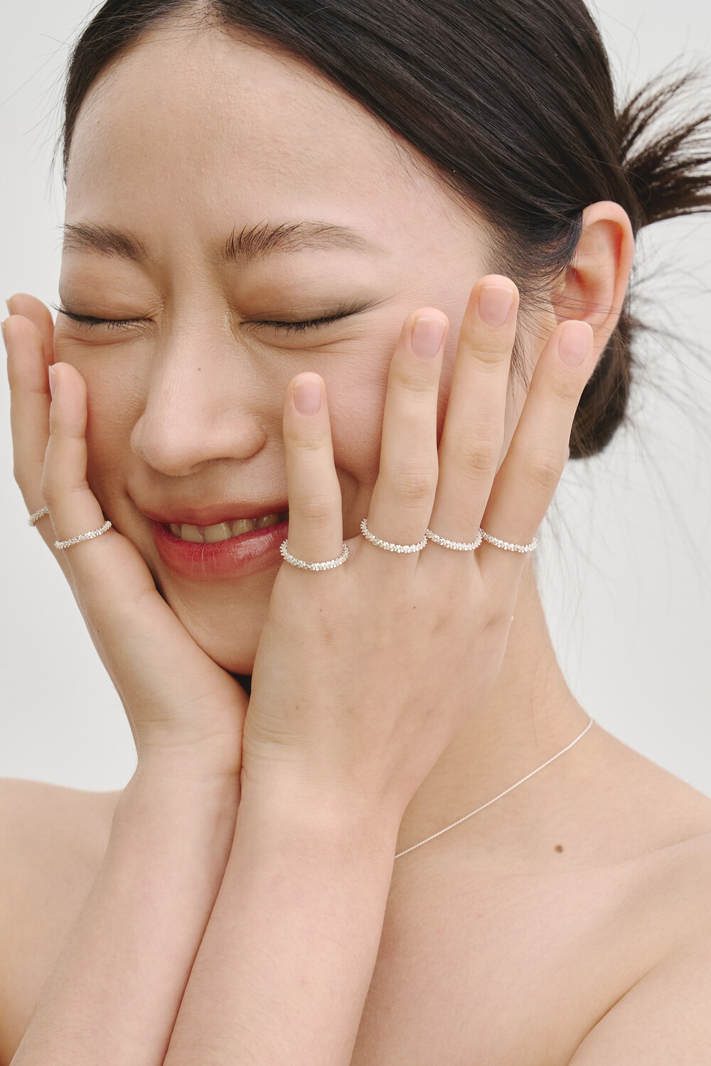 반짝 반짝 빛나는 눈꽃 체인으로 반지를 만들었습니다. 햇빛을 받으면 더욱 빛나는 사랑스러운 반지가 됩니다. 체인이여서 원형 반지가 아님에 주의 부탁드립니다.