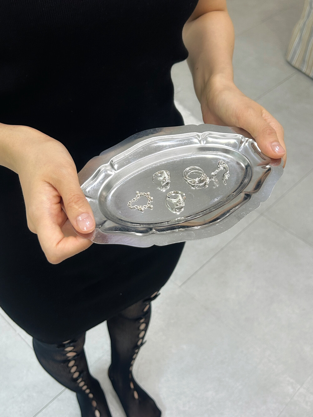 얇고 작지만 확실한 포인트가 되어 손에 작은 반짝임을 더해줍니다.