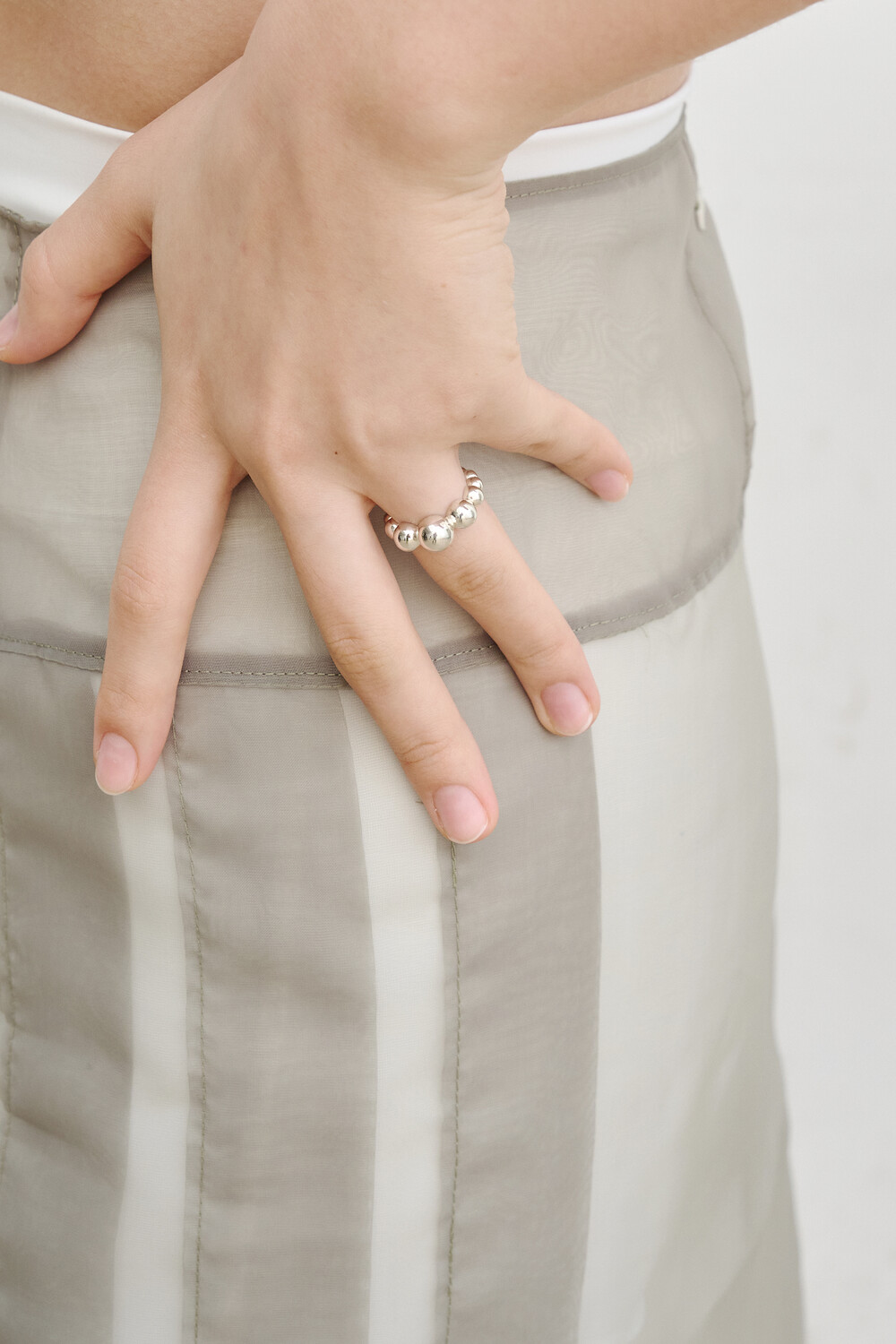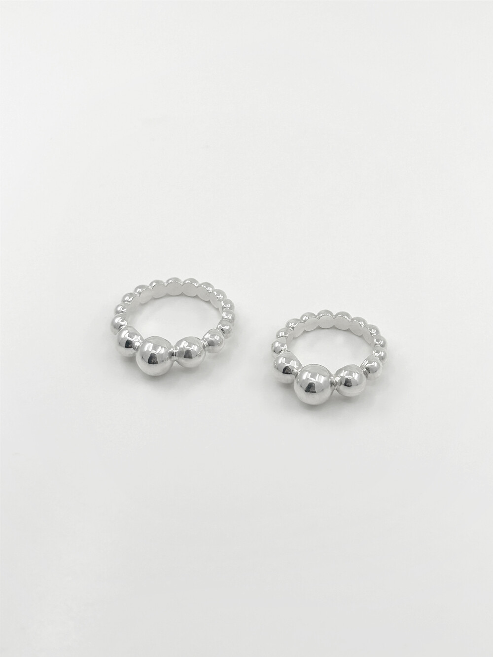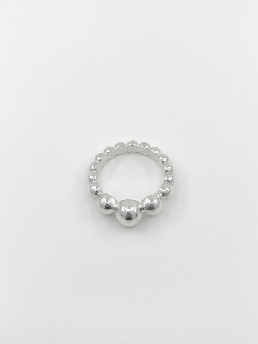 다양한 볼륨감 있는 볼들이 사랑스럽게 줄지어 있는 러블리한 반지입니다. 부드러운 광이 매력적인 포인트 반지입니다.